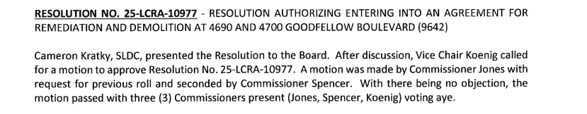 The LCRA Board was the second City entity to approve a $3,692,000 contract with S. Shafer Excavating Inc for environmental remediation and demolition services at 4690 and 4700 Goodfellow Blvd, a 16.45-acre former ammunition plant site.