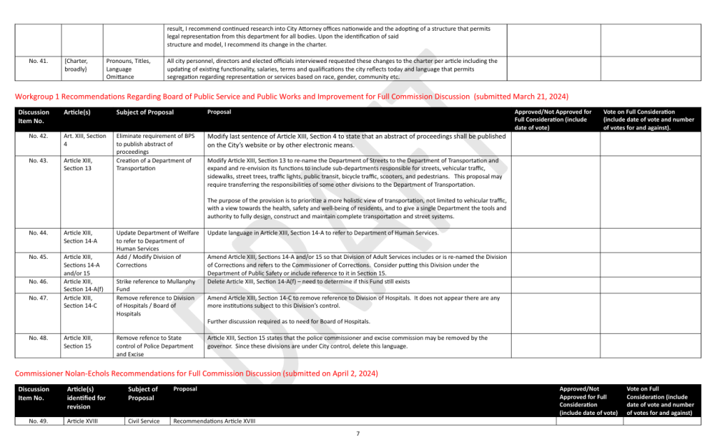 Below is the St. Louis City Charter (Reform) Commission‘s latest hard on the eyes, semi-public document on proposed changes to Charter.